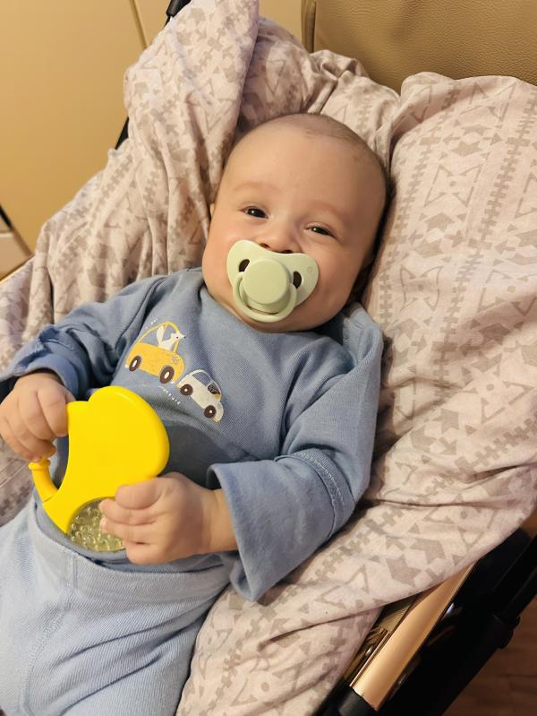 Ой , он у меня начал хватать где то 4-5 дней назад, я прям настойчиво цепляла в руку ему , держала сама первые минуты и вот так теперь сам ☺️