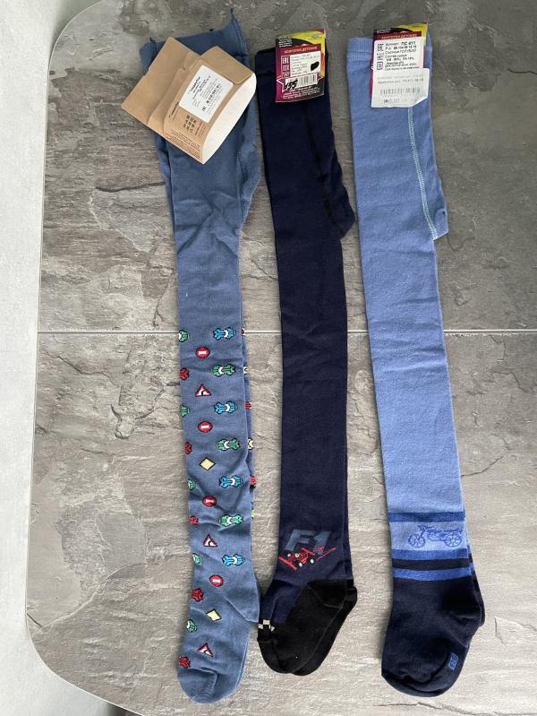 Продам колготки на мальчика. НОВЫЕ❗️ Размеры и стоимость: •98-104 голубые с велосипедом. (100 ₽) •104-110 темные и голубые со знаками , но визуально со знаками больше намного. (110₽)