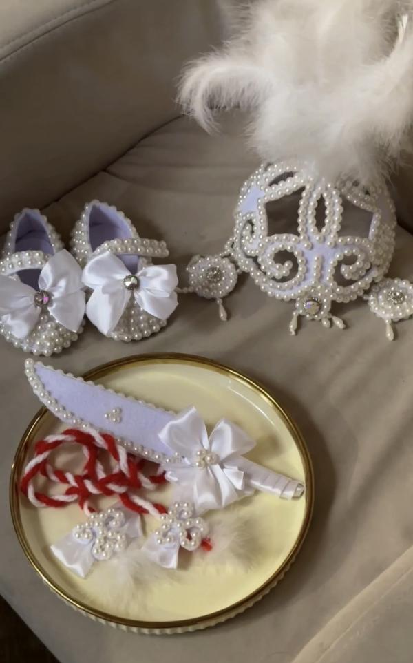 Продам головной убор,пинетки нож в чехле,есть жилетка доча мама на тусау кесу можно написать на ват сап 87084941221🌺