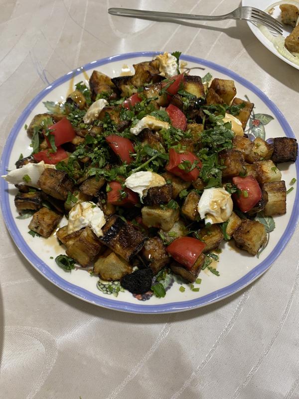 Салат с хрустящими баклажанами