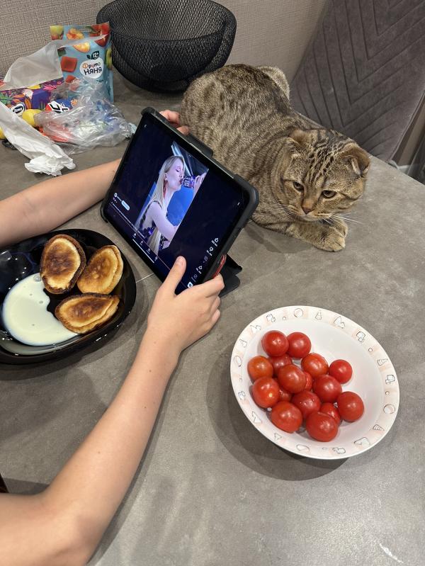 Сидим с котом за столом 😂 Вдвоем 😂😂😂