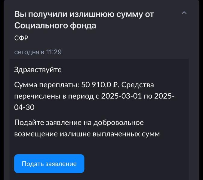 У меня была такая ситуация, только по уходу 🥲 сумма излишества была 22-24 где то 🤔 я везде была но мне твердили одно, что я украла у государства деньги и обязана вернуть 😢 хотя не правильно посчитала бухгалтерша. Пипец нерва этэ, сами снимали по 7т с выплаты. 😞 сходите разузнайте и ругайтесь.