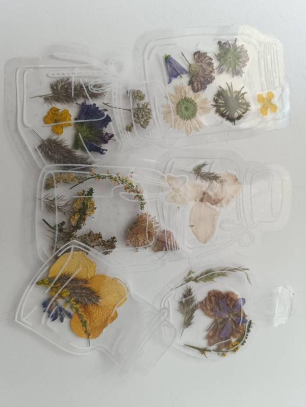 По мотивам прогулок сделали гербарий в баночках, о которых узнала здесь. Симпатично получилось.