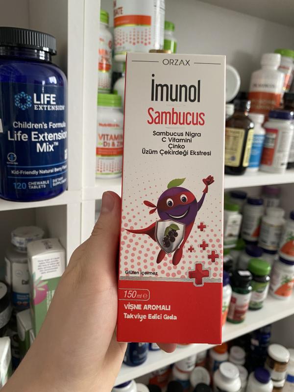Orzax Ocean Imunol Sambucus представляет собой сироп с экстрактом черной бузины, витамином С и цинком для поддержки иммунной системы, особенно в период простудных заболеваний.