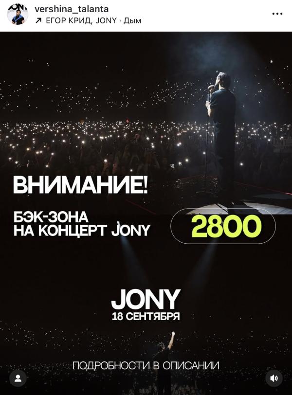 На концерт Jony вышли билеты по 2800₽🤩😍