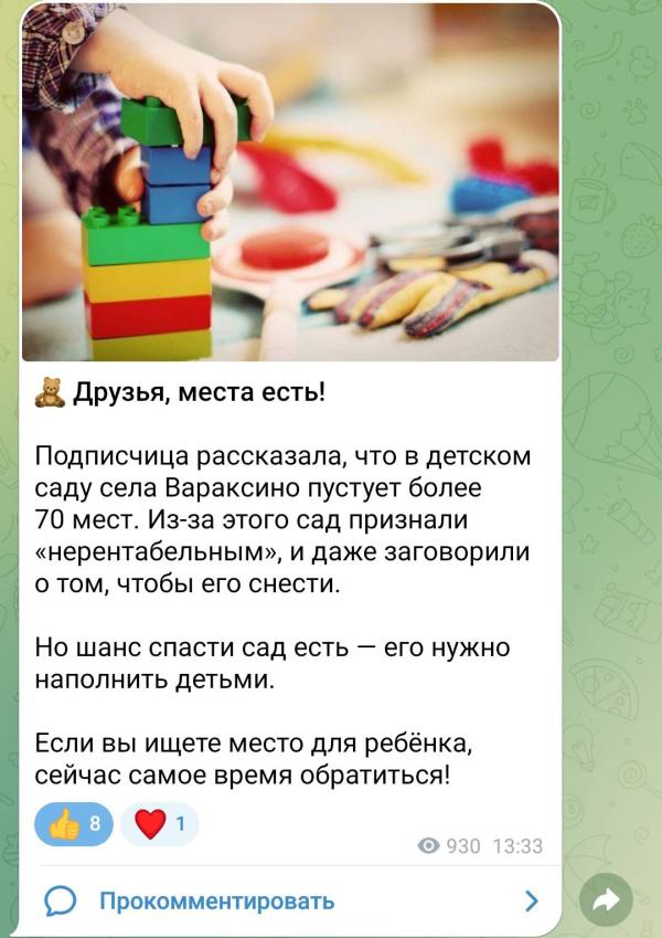 Малиновая гора, Ленинский район, помогайте! Нужны дети, чтобы садик не закрыли!