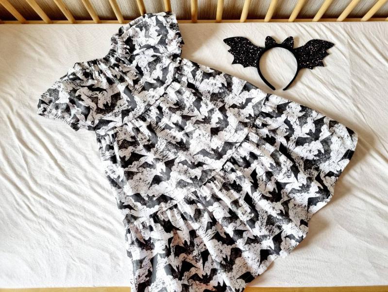 Если кто-то уже готовится к Хэллоуину, я ищу новую хозяйку нашему тематическому платью, сшитому на заказ! Подойдёт на 116-122-128, соответственно, длина получится от середины голени до колена, в зависимости от роста девочки. Платье в единственном экземпляре, повторов не будет 🦇