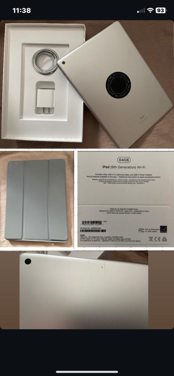 продаю айпад 9 поколения оригинал, зарядник тоже оригинал, ничего не менялось, 64гб, срок гарантии 02.11.2025г, вай фай, блютус есть, из минусов сзади поцарапан, коробка чуть-чуть вмятинах, чехол в подарок 🎁 цена 25000рб, причина продажи покупаю новую 🙌🏻