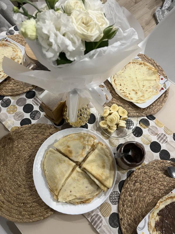 Кто хозяюшка? Я хозяюшка🫠Уломали дети на блины меня. Если уж пеку, то такие. Заварные молочные. Не сухие, эластичные, хорошо подходят чтобы заворачивать в них начинку.