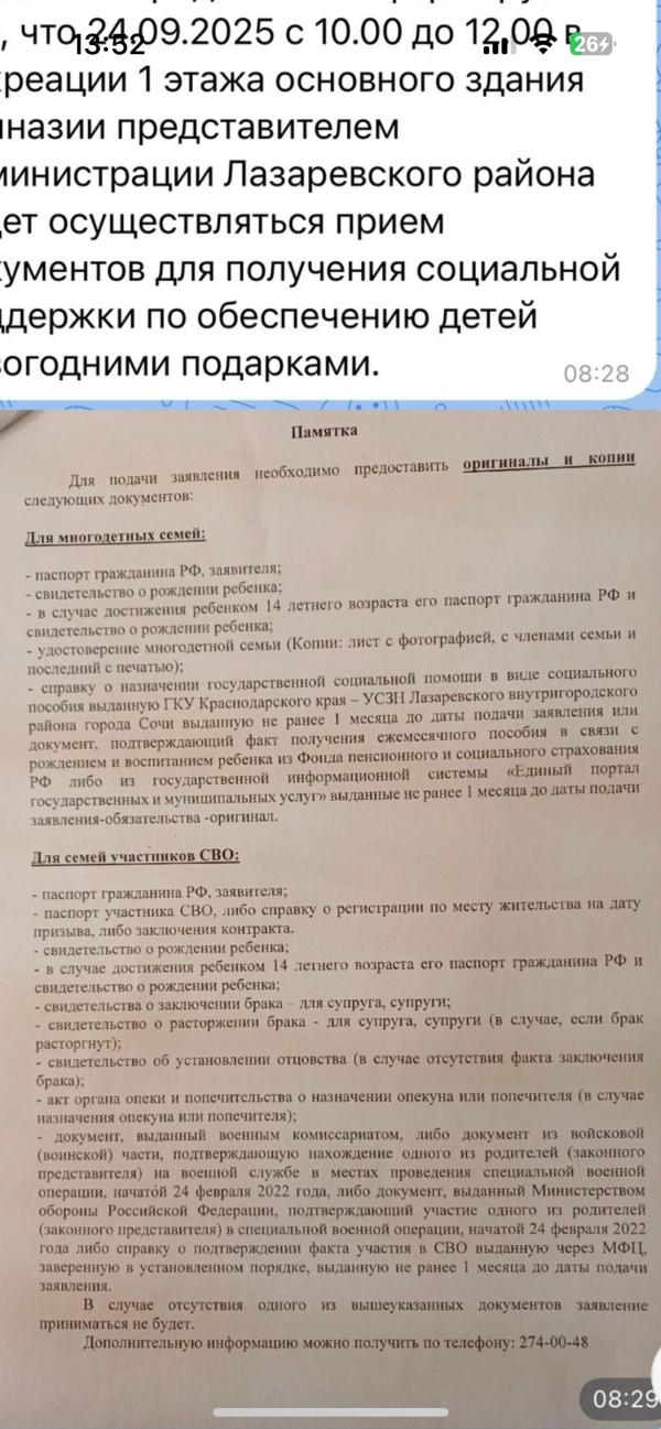 Может я что -то не понимаю, но у вас же это памятка на новогодние подарки? Про гсп вообще первый раз слышу. Нам в чат школьный прислали что до 20 октября в администрацию района можно подать на подарки многодетным, получающим единое пособие. Справка с госуслуг о том что получаешь пособие подойдет. Но я еще не подавала.