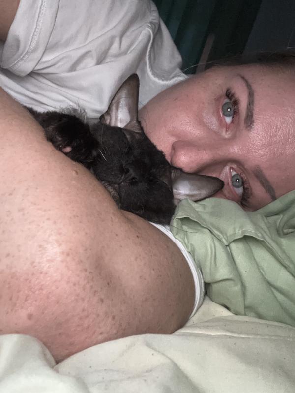 Кот дома, не ест совсем, кормлю насильно, из плюсов, пописал на горшок. Ходит, мяукает и везде со мной, вообще не отходит от меня