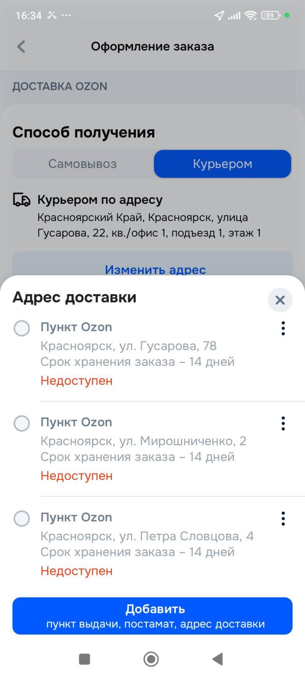 Я колеса вот заказывала на озоне зимние, так там вообще только 2 пункта выдачи и то ПЭК. Пришлось ехать на правый в итоге за ними 🫤