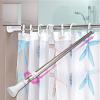 Палку от душевой шторки нужно крепко раздвинуть, чтобы выдержала вес. Если обои с текстурой, то оставит следы(