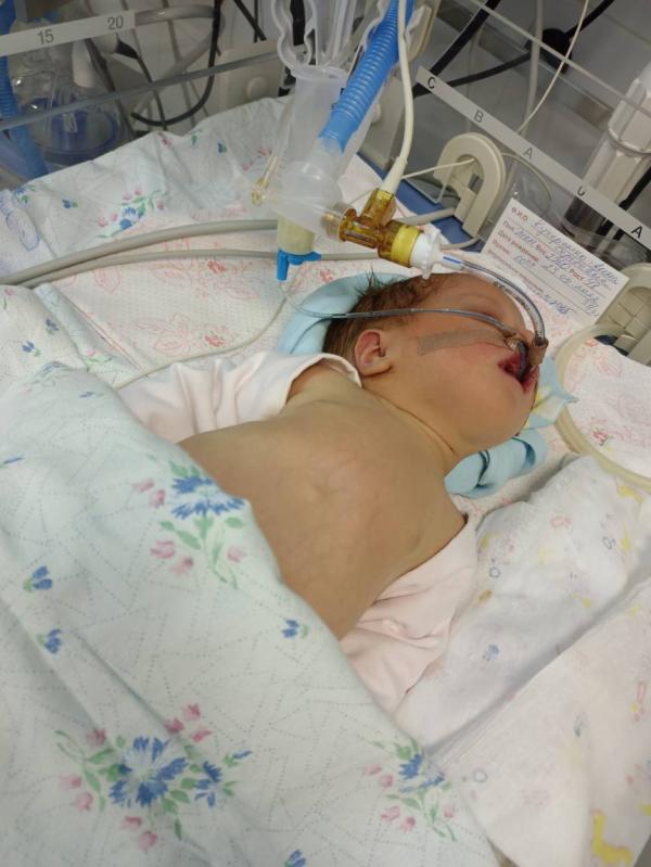 Большая гематома была на голове от неё. При рождении сатурация была 82.
