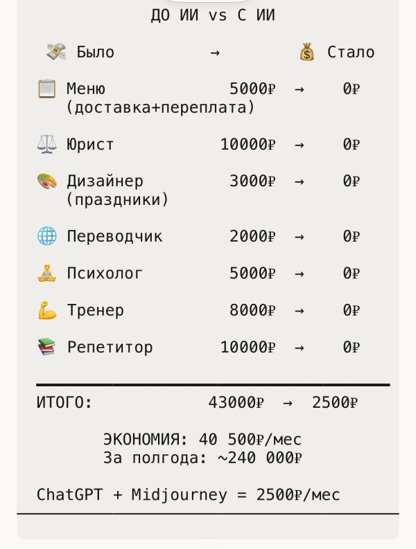 За 6 месяцев использования ИИ сэкономила примерно 150 000₽.