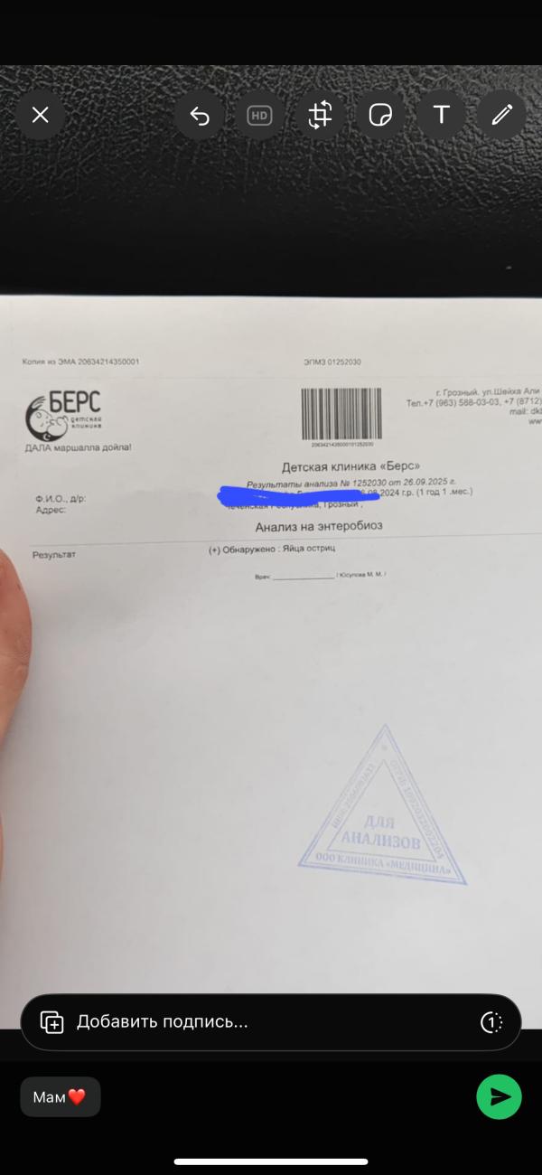 @mishka99, +7 (928) 015-85-37 номер клиники- к Мизан запись е ал, гастроэнтеролог ( паразитолог ) она. Эт медик профи детский на проспекте Мухаммада Али