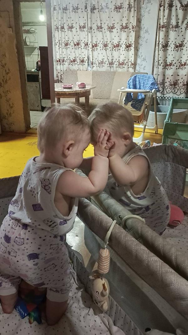 Это 2 малыша: разный цвет кроваток и 2 стульчика на фоне