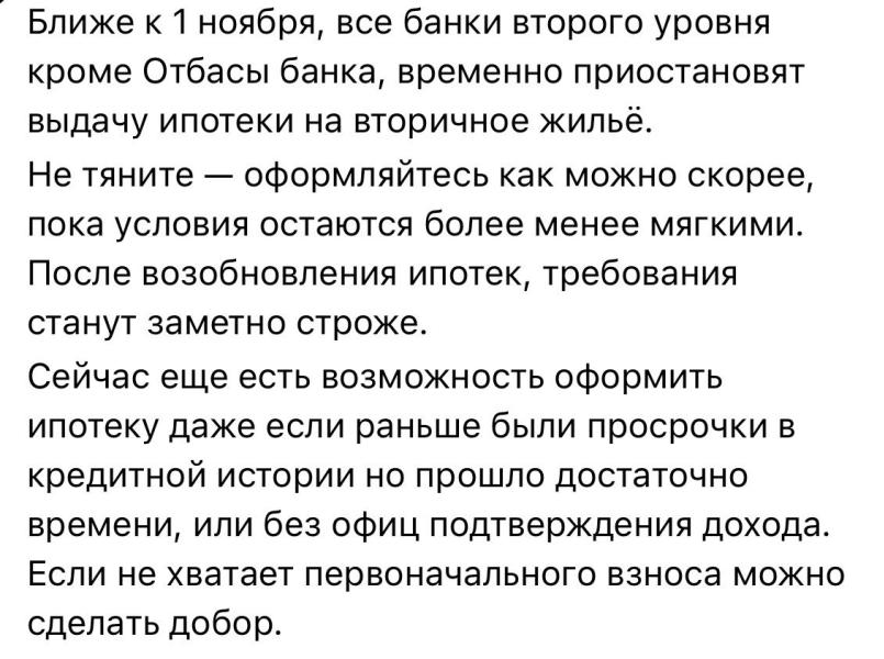 Отбасы банк в том числе и будет под пристальным вниманием (проверки жесткие) Обращайтесь кому нужна помощь по ипотеке✊🏼