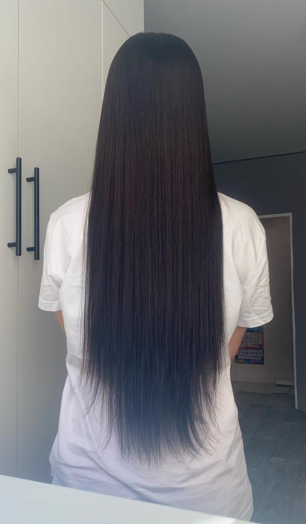 У меня почти нет сеченных волос , просто сухие на концах так как концы как раз то ки были когда то осветленные я потихоньку сращивала и отрезала их но эти уже не стала. У меня было каре почти я вот ровно два года я вообще не стригу волосы и вот что отросло. Хочу еще сантиметров 5-10 отрастить и тогда сделать ровный срез и уже поддерживать длину просто.