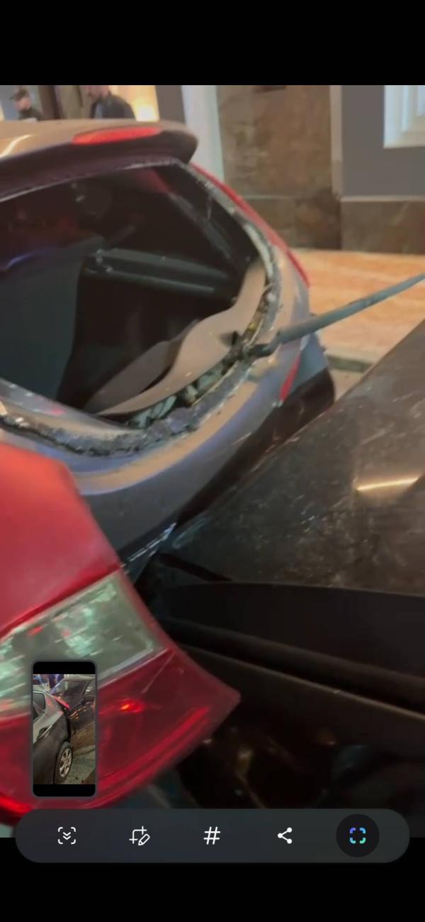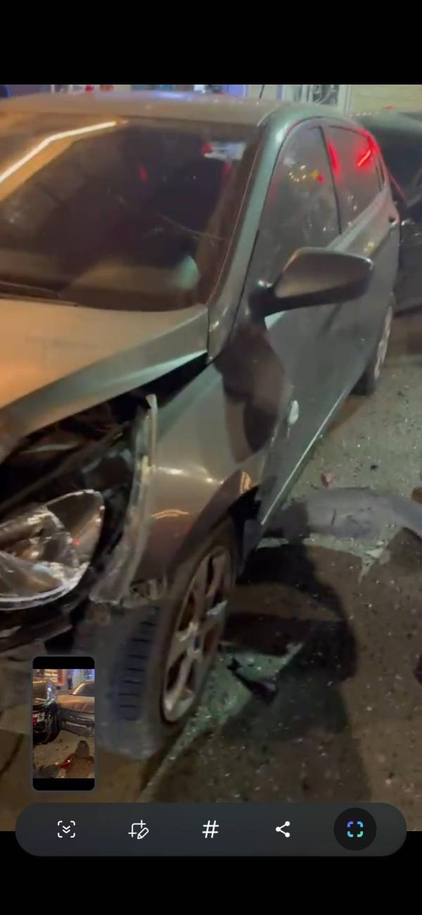 Вот такой "сюрприз" ждал мою маму, когда та была ещё на работе (работает шеф-поваром в Эсперанто и припарковала машину рядом с ним). Один "добропорядочный гражданин" проехал на высокой скорости на красный, врезался в машину, которая ехала по правилам, его отбросило в припаркованные машины у тротуара и он разбил 6 машин просто в хлам!!! И, потом, конечно же, скрылся с места аварии 😌 кто будет выплачивать ущерб? Не понятно. Хвала Всевышнему, в машинах никого не было 🙏🏻🙏🏻🙏🏻