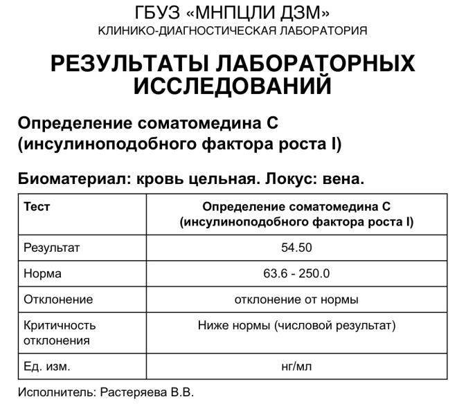 Важно: Этот результат должен быть интерпретирован лечащим врачом (чаще всего эндокринологом) с учетом ваших симптомов, возраста, пола, данных других анализов и, возможно, результатов стимуляционных тестов на гормон роста. Не ставьте себе диагноз самостоятельно на основании этого единственного показателя.