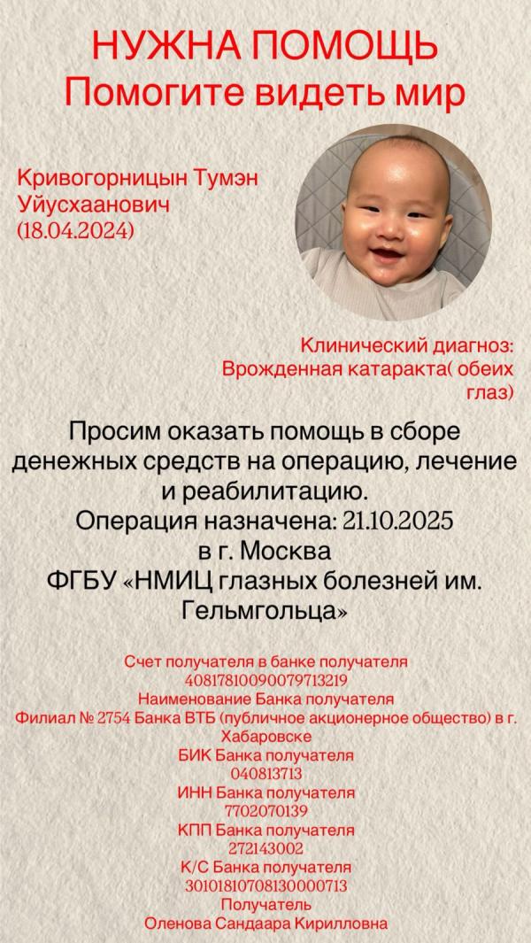 Если что вопрос киирбит буоллахтарына операцията толонор, миэхэ билетка туда обратно уонна проживанияга уонна эмигэр комолоьуоххут дуо диэн кордоьобун🙏🏼🙏🏼🙏🏼примеры корон оноттордум похожий ситуациялаах ого киэнинэн🙌🏽билет туда обратно 70к курдук буолар диэн корбутум уонна проживания балыаьабытыттан чугаьы кордуу сатыыбын соготох огобун кытта котор буолан🙄улахан огом эмиэ врожденный катаракталаах торообутэ устэ кото сырыппыппыт операциябытыгар, онно бэйэбит кыахпытынан толоон🙌🏽аны кыра уолум эмиэ оннук торообут, ол иьин ойдуоххут, ойуоххут диэн саныыбын😔