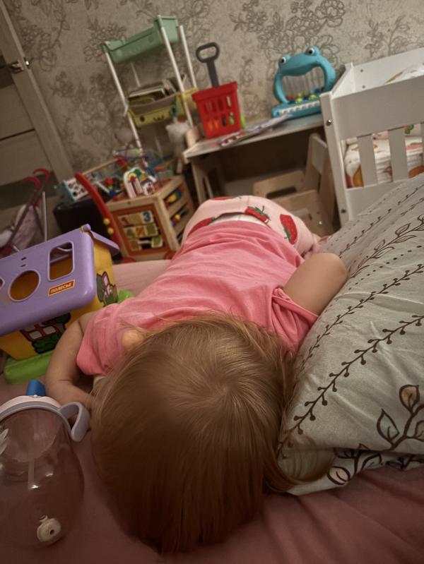 В то время, как другие мамы жалуются , что не могут уложить детей, я просыпаюсь и нахожу человека в такой позе 😅 видимо она хотела залезть разбудить меня, но что-то пошло не так 🤭 Я не хвастаюсь, просто забавный момент