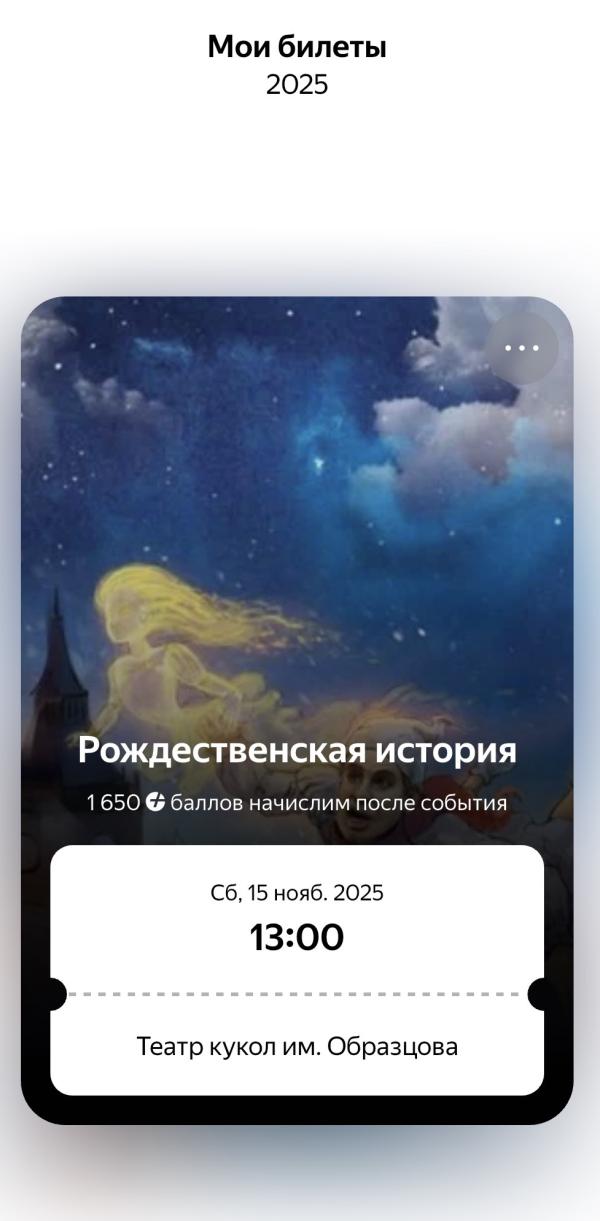 Пристраивают три билета в театр Образцова. Партер, места очень крутые. В это воскресенье 13:00 рождественская история