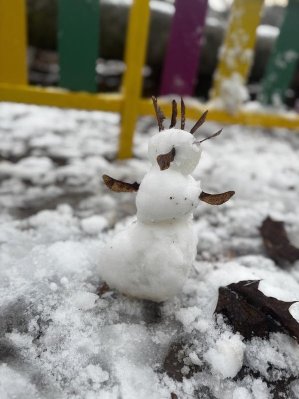 Что ж, все-таки вышли на улицу и слепили первого снеговика, покидались снежками))