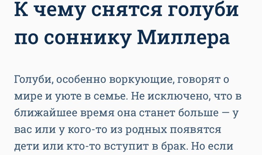 Ложусь спать, вспоминаю сон какой снился ночью прошлой , а снился мне голубь , красивый такой , упитанный , я его хлебом кормила а он курлыкал , решила загуглить. Не верю в сонники вообще, но прям на 100% была уверена что это к детям 😄