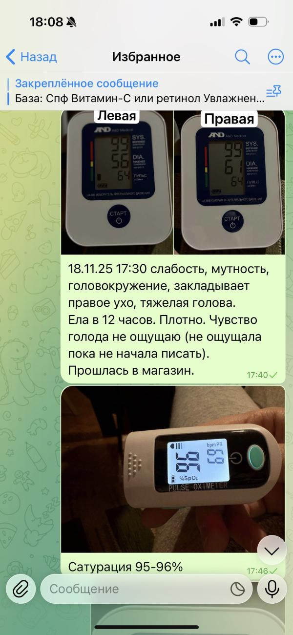 Пришла забирать свою игрушку для взрослых и чувствую, что голова кружится, а я с ребенком еще спуститься по крутой и высокой лестнице должна 🫣 поняла, что очень вовремя: как раз проверю тонометр 🤣 на момент когда измеряла не чувствовала голода от слова совсем. До этой лестницы вообще чувствовала себя потрясающе бодро. Только когда пришла домой, пересняла показатели, записала все, вспомнила когда я ела последний и единственный раз и что было это в 12 часов дня без перекусов. 🫠 мда… с мужем мой распорядок поменялся. У него напрочь отсутствует культура принятия пищи, а у меня, похоже, есть некие проблемы с пищевым поведением, если мне организм не сигналит во всю «кушать давай!». Он работает до последнего и потом медленно выходит из строя. 🫠 Вырисовывается более четкая картина причины моего такого состояния. По крайней мере одна из. Как и предполагали тут. Анализы пока не делала, к врачу не ходила, но теперь хоть смогу картину более ясную ему показать, когда дойду.