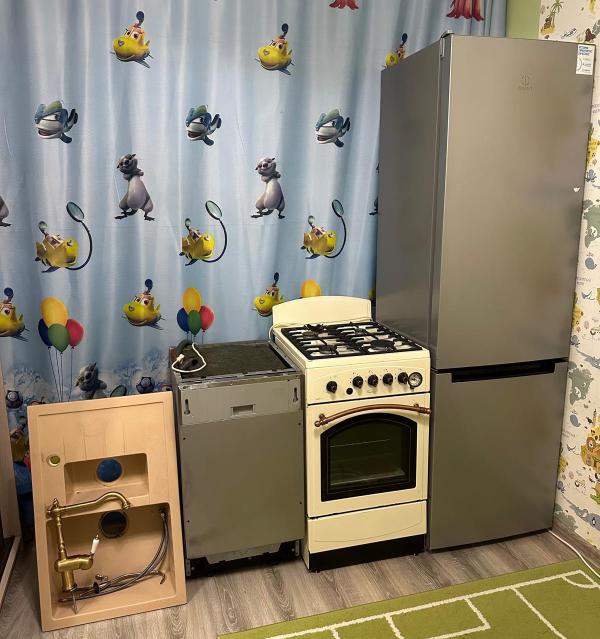 Девочки, распродаю кухонную технику. За все 20 к. Холодильник индезит, плита дарина, посудомоечная машина встраиваемая куперсберг, раковина, смеситель.