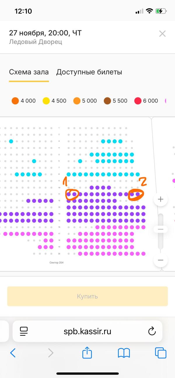 Ледовый дворец, сектор 204. Хочу билеты у прохода, вот он по середине сектора или справа? Какой вариант 1 или 2 лучше брать тогда?