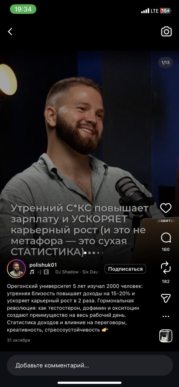 Любимый пост мужа. Часто его отправляет. И если действительно после утреннего с*кса у него состоялась хорошая сделка, то обязательно пишет об этом мне: «вот видишь, работает» 😂