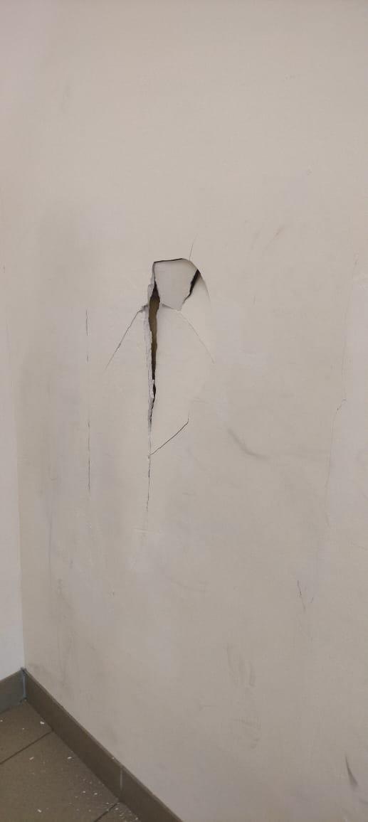 Может кто понимает, как можно отремонтировать данную стену, сын в школе играли с одноклассником(толкались) и получилось как получилось…. Как я понимаю там гипсокартон