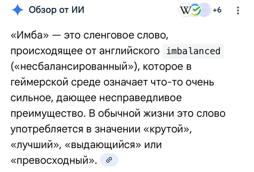 Каждый раз когда я слышу непонятное слово я его гуглю😂😂😂😂😂итак, ИМБА пополнил мой словарный запас🫡🤣