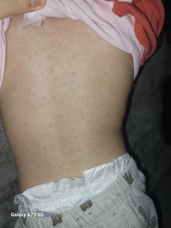 Сыпь на животе, спине, чуть слегка где виски и за ушками