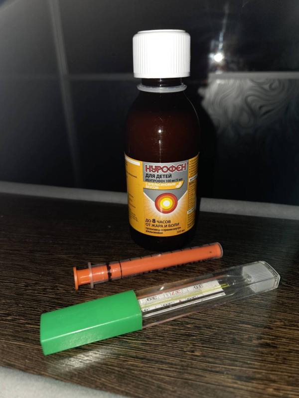 Нурофен форте уже может давать , там вес делить на 4 . Например 10к это 5 мл а Нурофен форте 2,5 мл