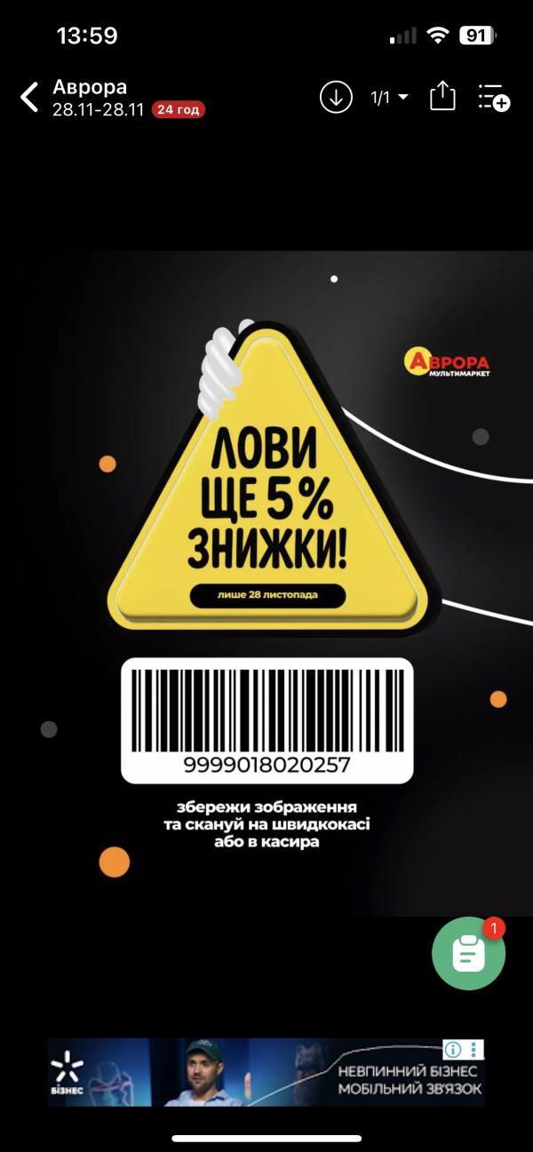 Скануйте цей штрих код в Аврора і буде сьогодні ще знижка 5 % на усе