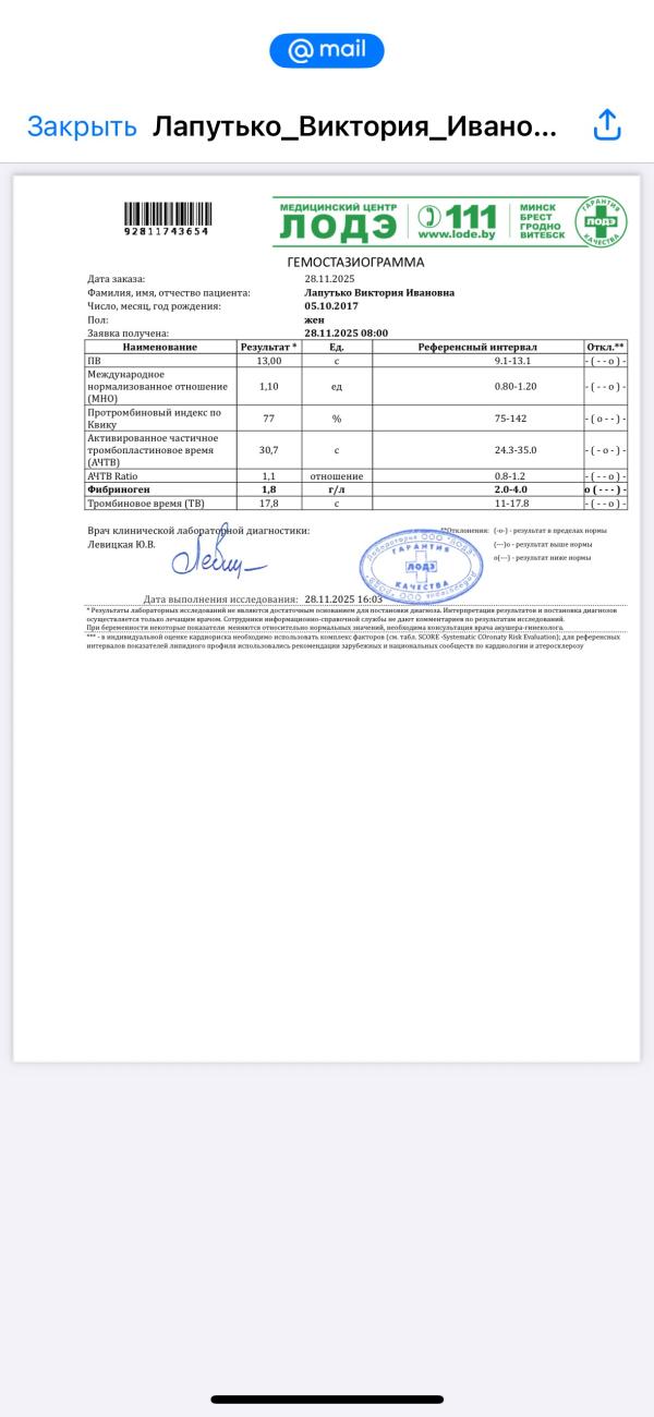 Коагулограмма была с отклонением , госпитализировали без пересдачи
