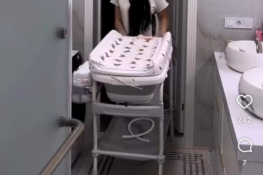 Когда не купала стоял как пеленальный столик,удобно делать массаж,чистить уши и все такое. Каждый раз мерила ещё рост😁