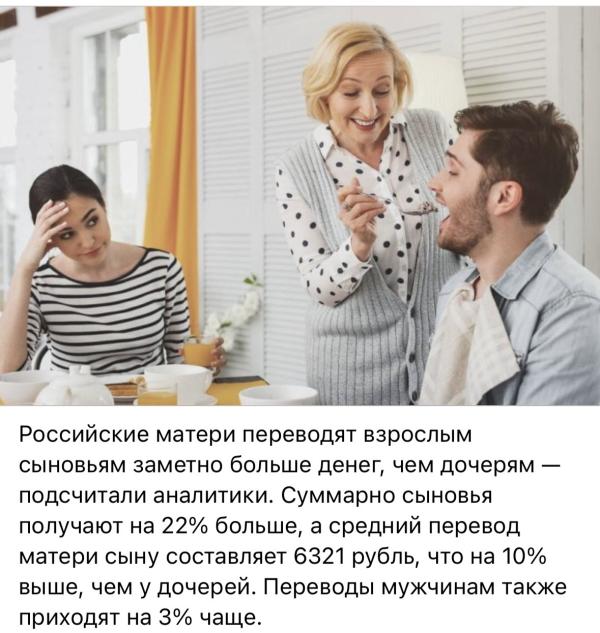 У моей мамы внук-корзиночка😂 мне ничего не перепадает😂 А вообще это логично, чтобы сын занимался учебой, но мог позволить себе например девушку в кино сводить, он возьмет у родителей. А дочка за счет парня сходит😂