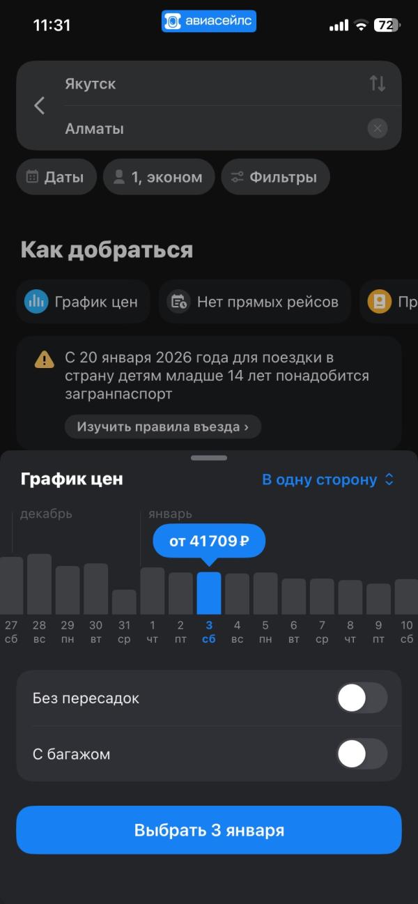 На январь до Алматы как выгодно купить билет) 2 взр и 1 ребенок🙌🏻