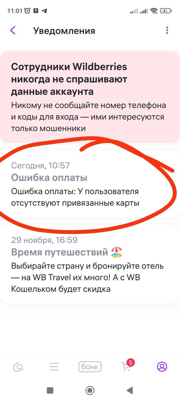 🌹 Подскажите ,за день несколько раз приходят такие уведомления. Это из за чего может быть так . Карта не привязана к ВБ.
