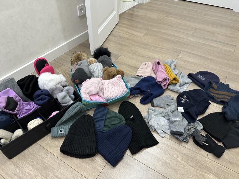 У меня в коробках, отдельно перчатки и шапки, отдельно мои и мужа и сына. Всё в коридоре. Аккуратно