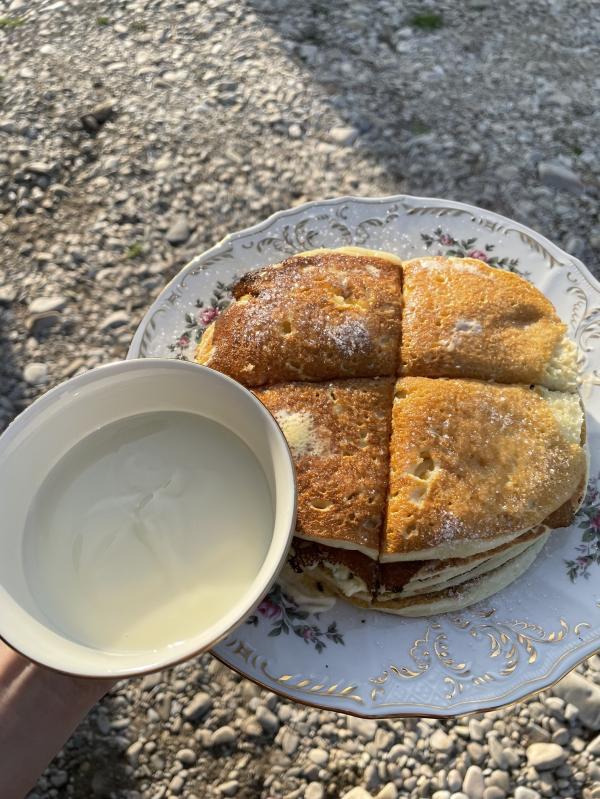 А еще жарь обязательно на быстром огне сверху можно домашнюю сметану и сахара и к нему сгущенку 🥰