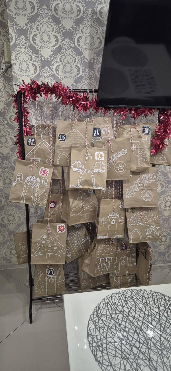 Я сейчас сына в школу отвезу и то же все пакетики закреплю. Он тьфу тьфу с просонья пока и не понял, что уже 1 декабря