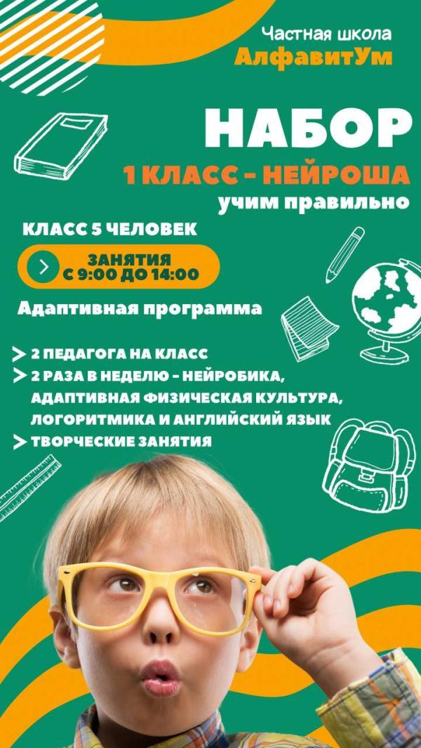Если ваш ребенок имеет особенности развития – СДВГ, ЗРР, или вы просто ищете уникальный подход к обучению, который по-настоящему раскрывает потенциал мозга, – Частная школа "АлфавитУм" приглашает в 1 класс "Нейроша"!