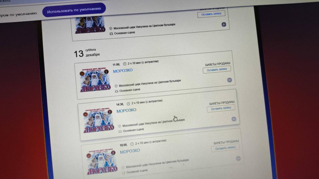 Смотрела ребенку билет на новогоднее представление. Какие же люди уроды . Раньше я через Авито брала у перекупов подешевле. А сейчас все билеты выкуплены , на Авито теперь продают они же за дороже . Какого хрена блин. Еле нашла, остаточные билеты . А так уже много отзывов о том что люди переплачивают . И так всё дорого. Да, кстати, указ уже подписали ,НДС поднимают. (_!_) Жопа.