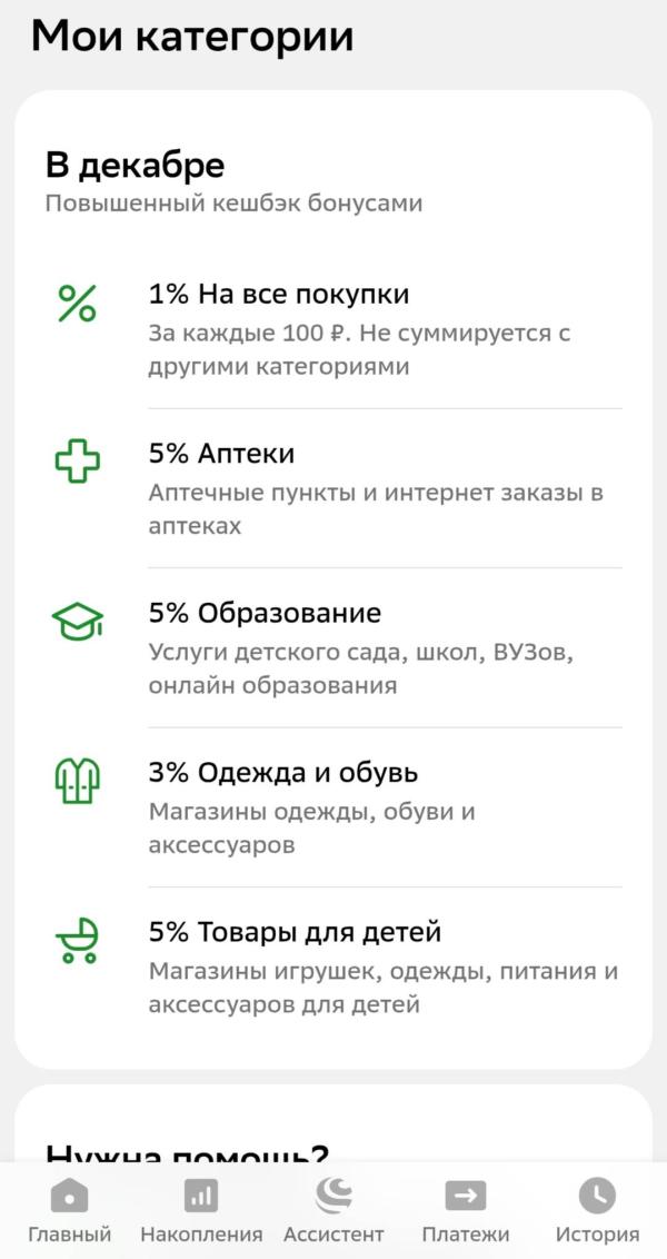 Не забыли выбрать категории Спасибо? ✅☺️ Самый затратный месяц ди онон не забывайте✊ Сбербонус чтобы кешбек приходил с каждой покупки вы должны выбирать категории☝️ если не выбираете не капает